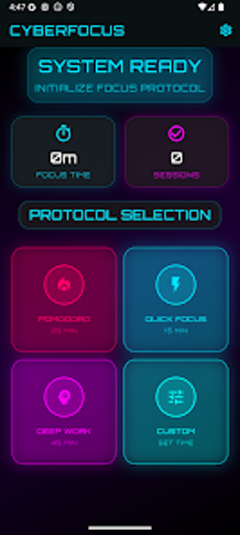 Cyberpunk Focus Timer is een gratis Android-app die gebruikers helpt hun productiviteit te verhogen met een uniek cyberpunk-thema. De app biedt een geavanceerde focus timer met aanpasbare sessies van 1 tot 120 minuten, vergezeld van een mooie flipklokanimatie en een fullscreen modus voor ononderbroken concentratie. Met geluidseffecten en haptische feedback wordt de gebruikerservaring verder verbeterd.